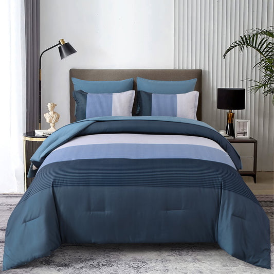 Navy Blue Comforter Set, King Size, Striped 3-Piece Bedding Collection