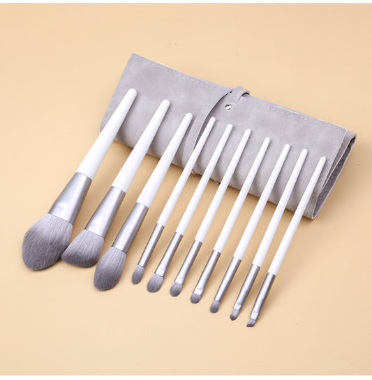 Silver Gray (Brush + Bag) 10 Piece Face Eye Makeup Brush Set - Premium Makeup Blending Brushes