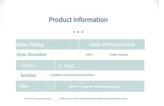 Light Blue Pet Carrier Backpack with Transparent Window 33*18*42cm