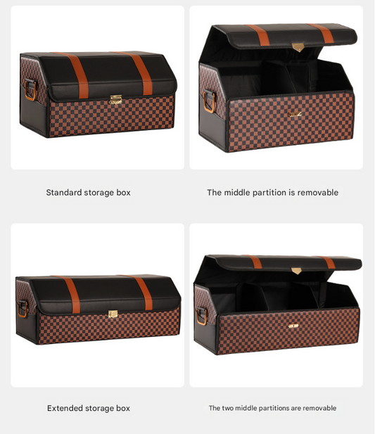 Medium Sized Brown-white Foldable Car Trunk Storage Box - Large Capacity Insertable Rear Organizer