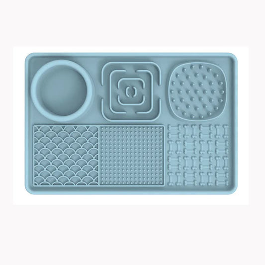 Multi-Functional Slow Feeder Mat for Dogs- Anti-Slip Lick Pad with Multiple Textures Rectangle 2PCS (Blue & Grey)