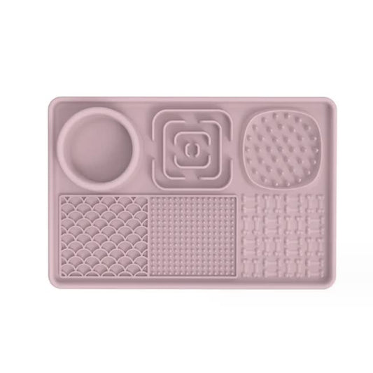 Multi-Functional Slow Feeder Mat for Dogs- Anti-Slip Lick Pad with Multiple Textures Rectangle 2PCS (Pink & Green)