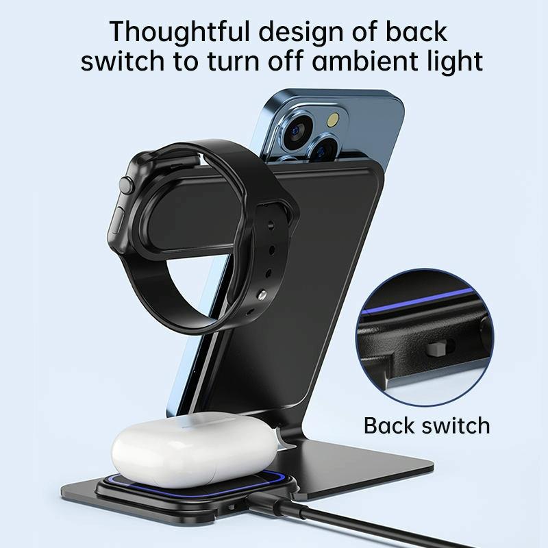 15W 3 In 1 Aluminum Wireless Charger - Blue