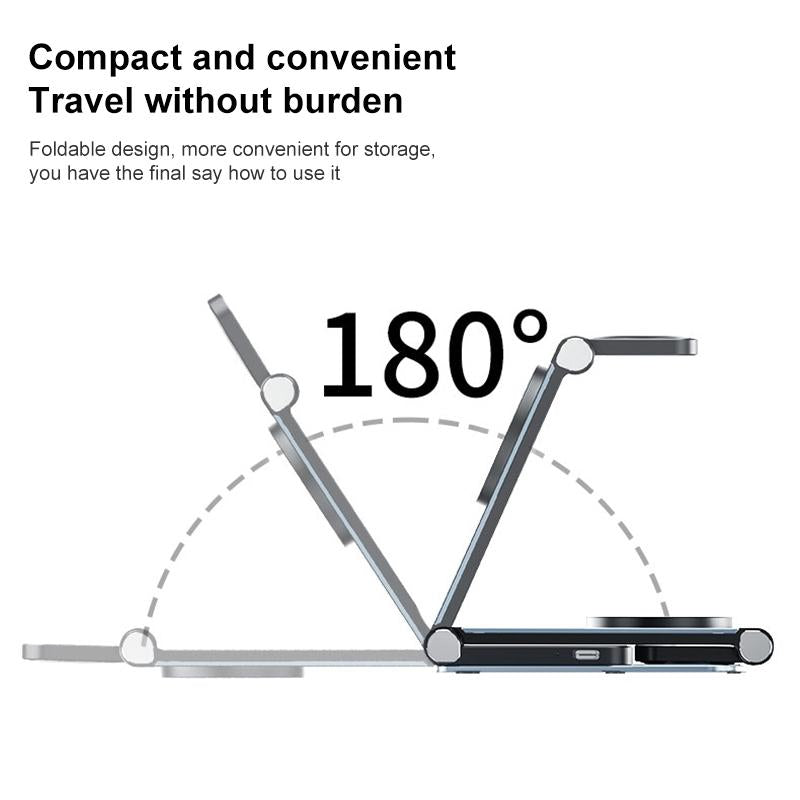 15W 3 In 1 Foldable Desktop Wireless Charger - Dark Gray
