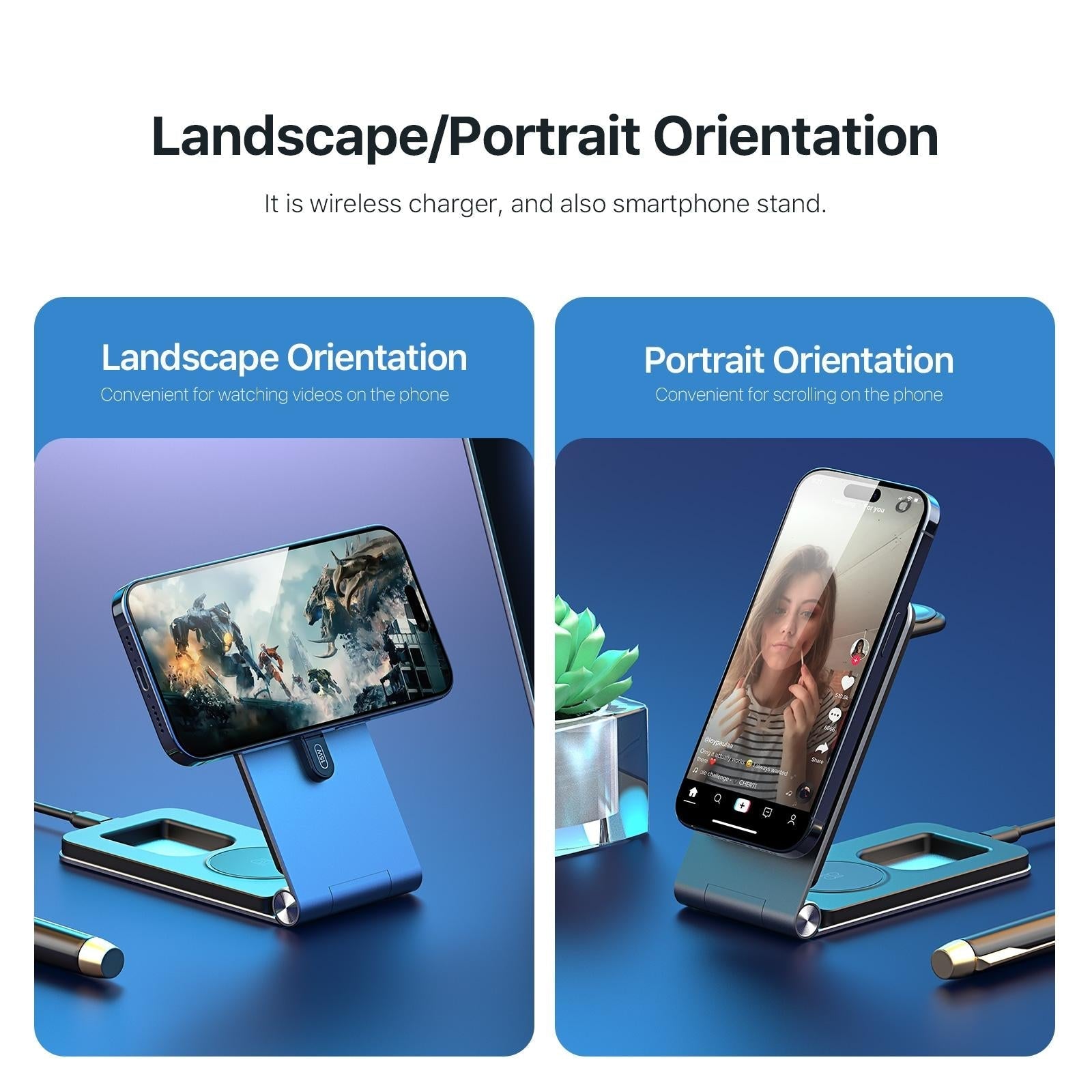 15W 3 In 1 Foldable Magnetic Wireless Charger Grey