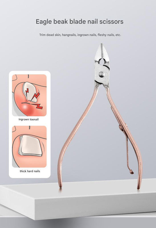 • Precision Crafted Tools: Nail clippers feature sharp, double-ground curved cutting edges for clean cuts. Eagle-beak pliers designed for tough nails and dead skin.