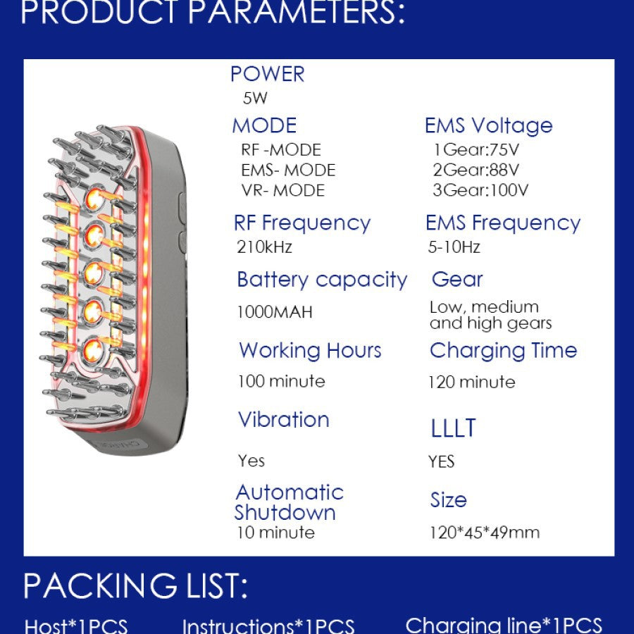 Rejuvenate your scalp and promote healthier, stronger hair with our advanced 4-in-1 Hair Growth Comb. This innovative device integrates four powerful technologies: Low-Level Laser Therapy (LLLT), Radio Frequency (RF), Electrical Muscle Stimulation (EMS), and Vibration Massage (VR) to provide a comprehensive scalp care treatment. It is designed to act on hair follicles, relieve scalp tension, and improve the penetration efficiency of hair care ingredients, leaving your hair softer, tougher, and shiny. Featuring multiple modes and intensity levels, a waterproof head design, and a long-lasting rechargeable battery, this comb is a convenient and effective tool for your hair care routine.