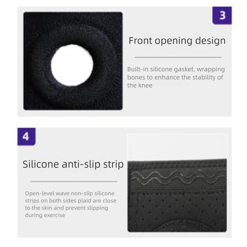 • Open Patella Design with Padding: Features an open front design with a built-in EVA/silicone gel pad ring that surrounds the kneecap (patella), relieving pressure and improving stability and tracking.