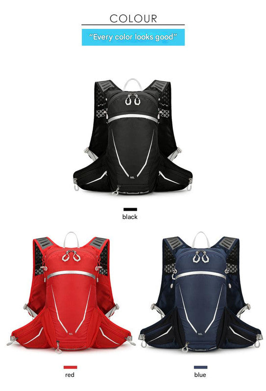 Embrace your outdoor adventures with our versatile and lightweight 16L Backpack. Whether you're cycling through scenic routes, hiking challenging trails, running, or simply need a compact bag for travel and climbing, this backpack is designed to offer comfort, convenience, and durability. Made from water-repellent nylon, it helps protect your essentials from light rain and splashes.
