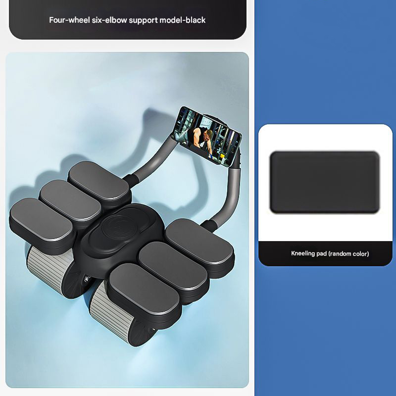 Black Six-Elbow Four-Wheel Automatic Rebound Abdominal Wheel - Home Fitness Equipment for Toning Abs and Building Core Strength