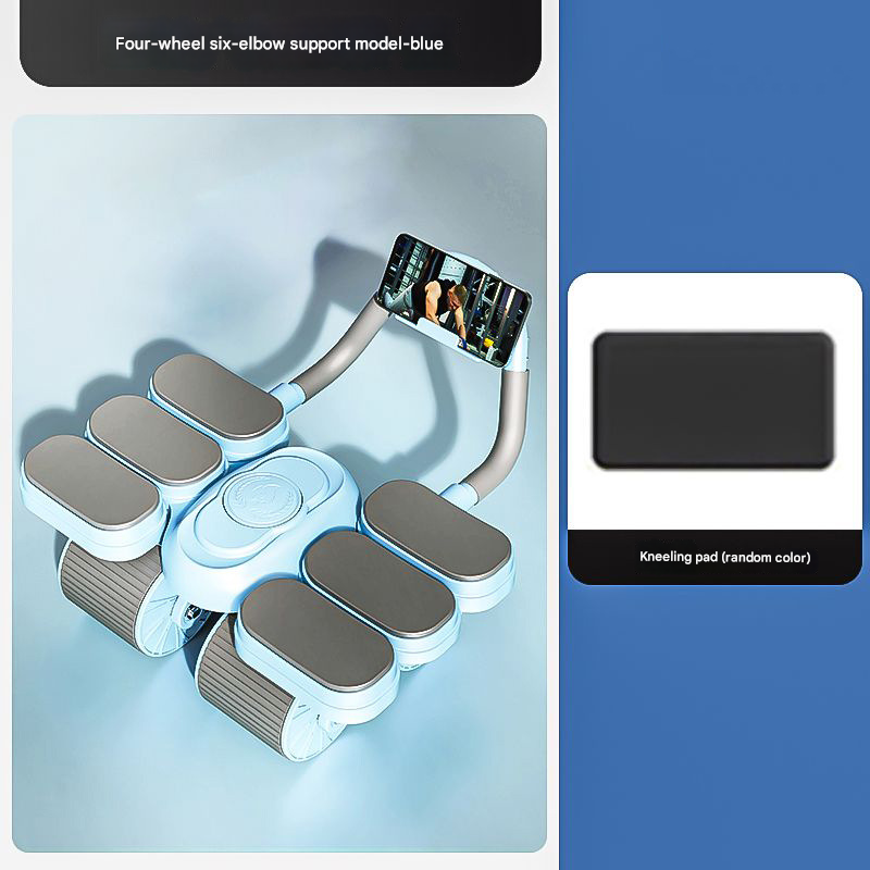 Blue Six-Elbow Four-Wheel Automatic Rebound Abdominal Wheel - Home Fitness Equipment for Toning Abs and Building Core Strength