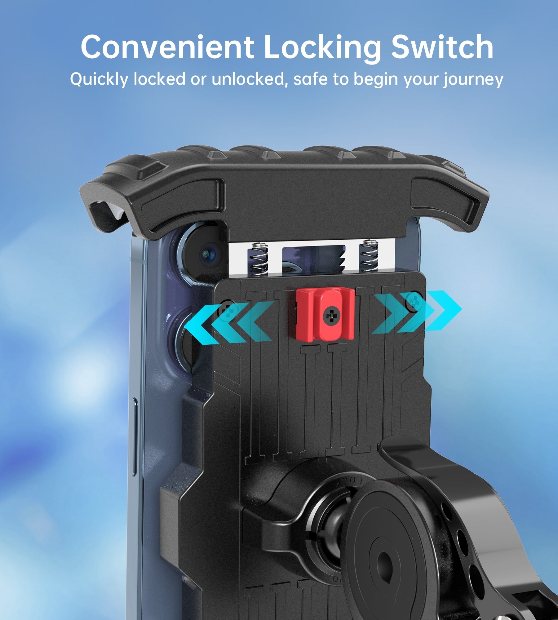Comes with a 360 degree rotation ball, the adjustable phone mount allows you to freely adjust the angle during riding. Meet all your needs like GPS, Calls and playing music, etc.