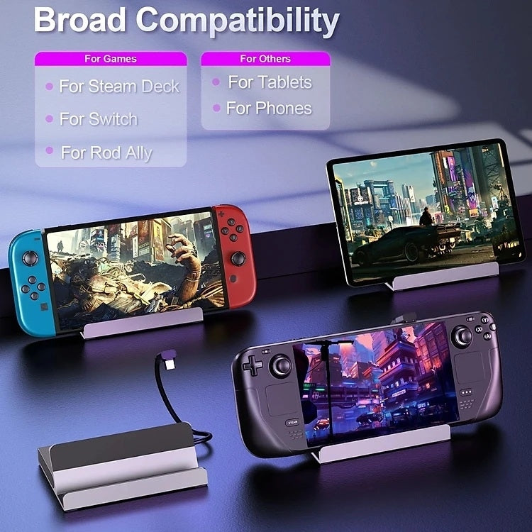 The HUB-M77 is not only compatible with Steam Deck, but also with other devices such as ROG Ally, Nintendo Switch, tablets and phones. It perfectly matches the look of the Steam Deck, and its compact design means you can take it with you anywhere.