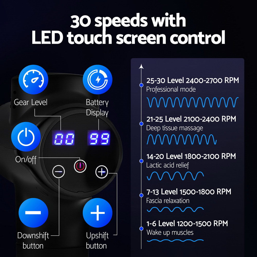 Everfit Massage Gun 30 Speed 8 Heads Vibration Muscle Massager Chargeable Black