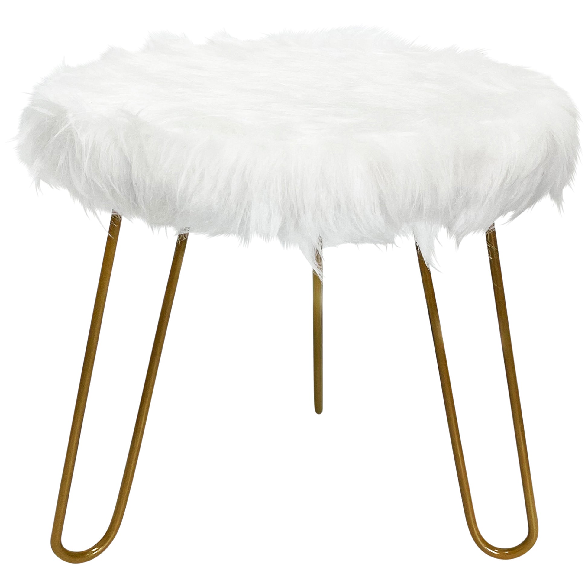 Faux Fur Shaggy White 3 Legged Child Stool / Footstool 30cm