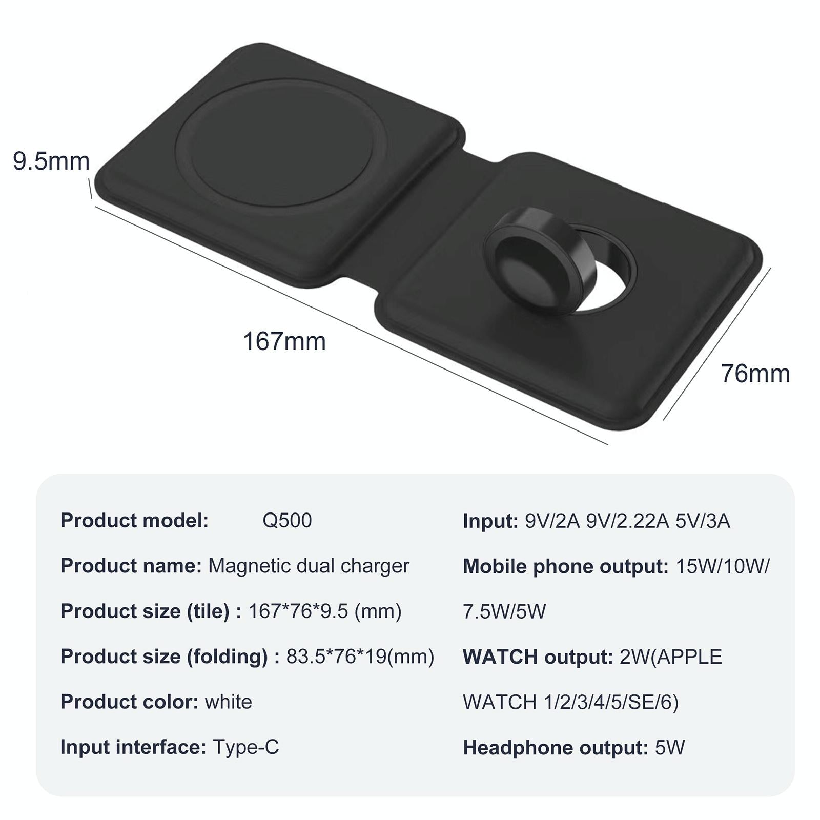 • 1 x Foldable Dual Wireless Charger For Phones Iwatch Airpods