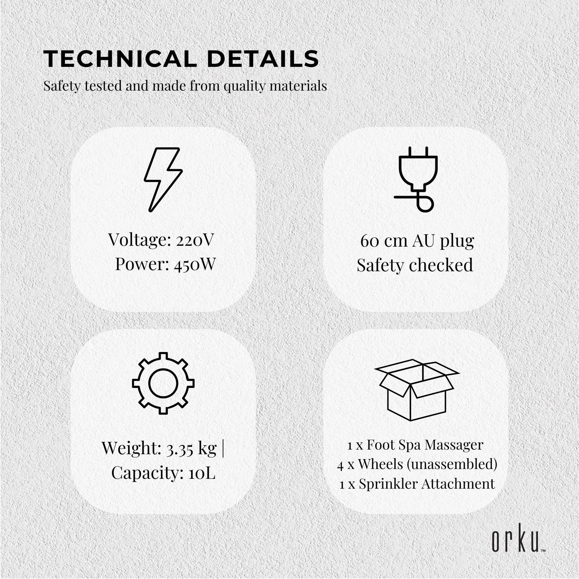 The Orku foot spa massager is an advanced, smart and compact device for any home or salon. This innovative automatic water temperature controlled bath features a high tech, one button start, LCD touch control panel, and comes with a remote control to conveniently adjust your massage to you liking.