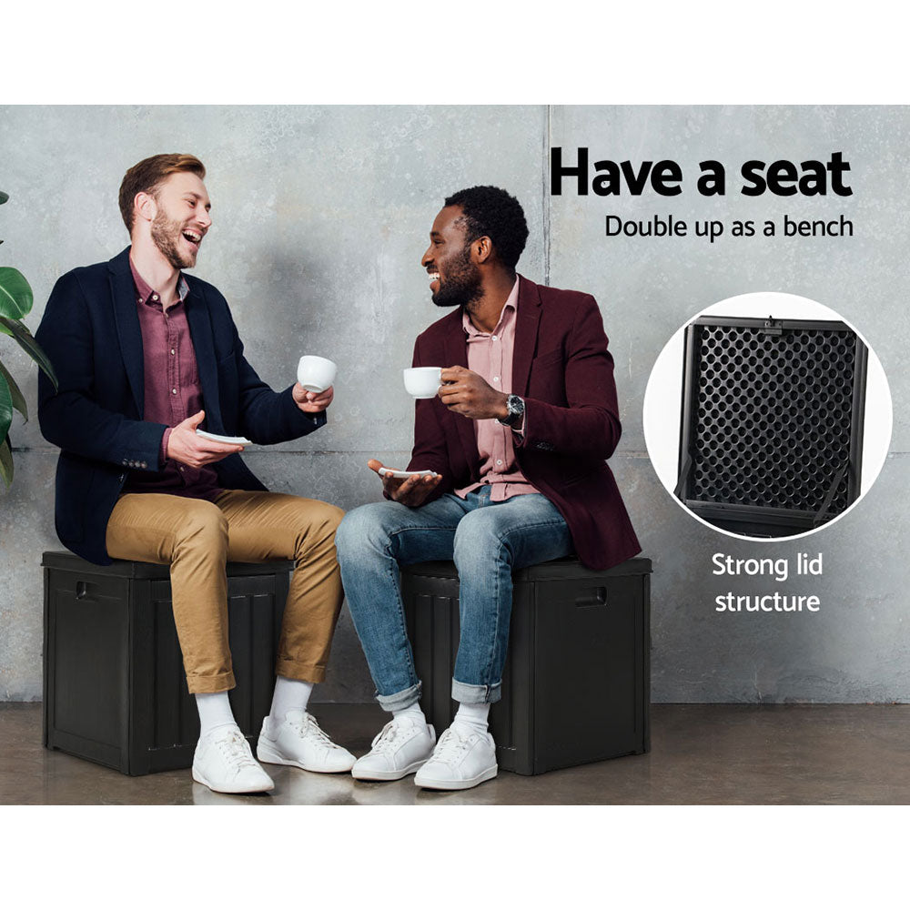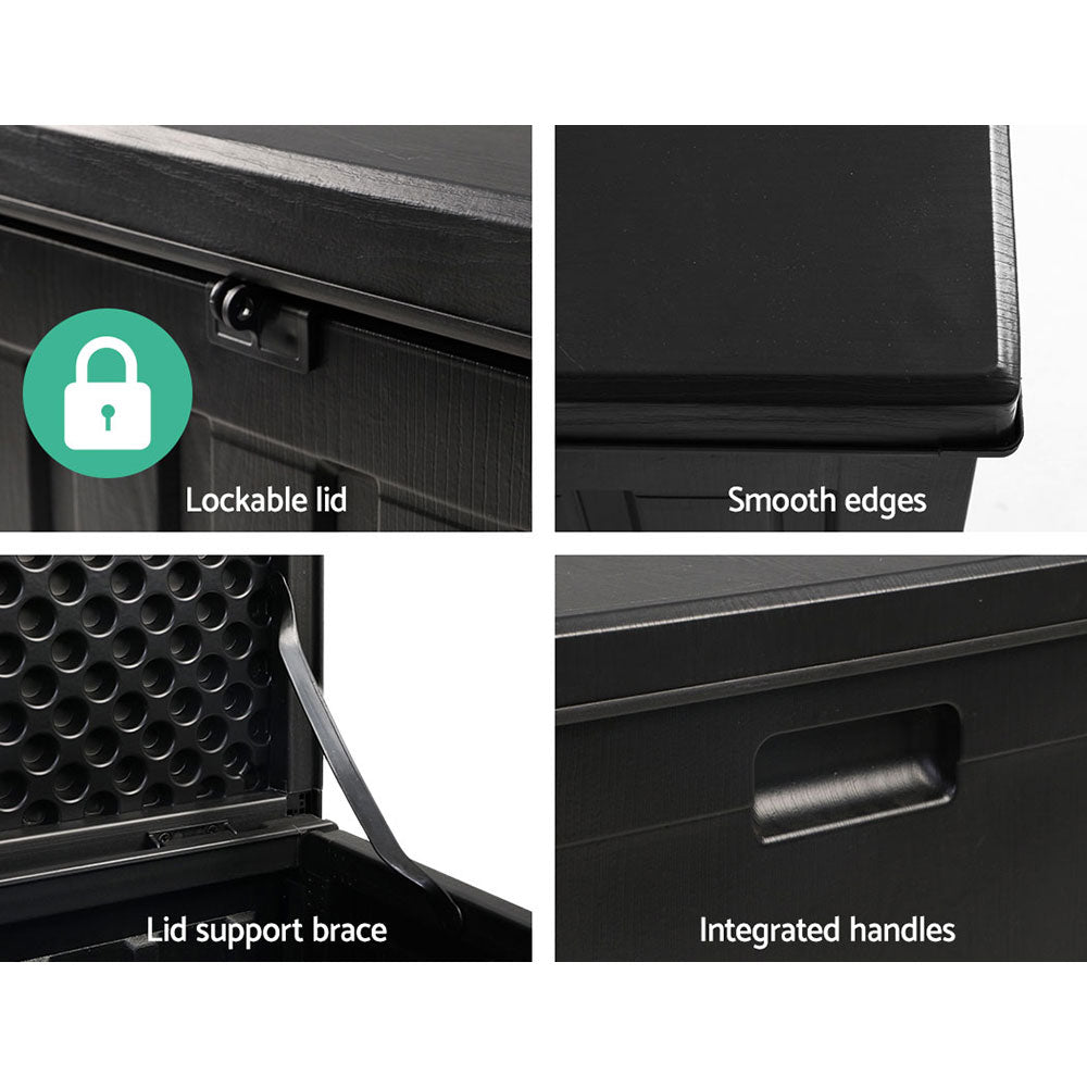 Gardeon Outdoor Storage Box 80L Container Lockable Garden Toy Tool Shed Black