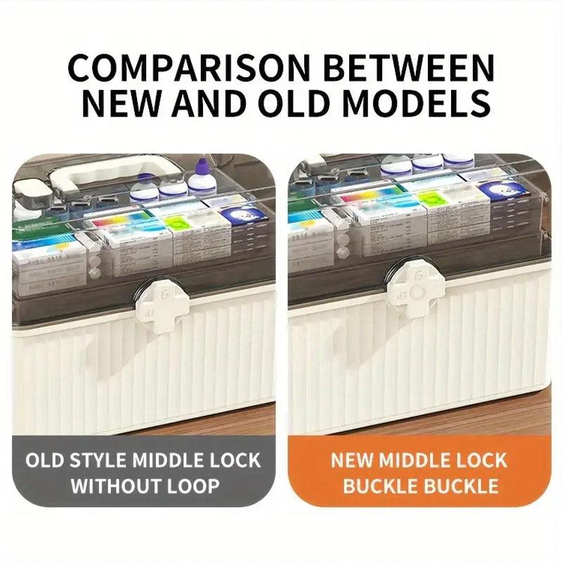 Keep your medicines and first-aid essentials neatly organised with this large-capacity multi-layer medicine storage box. Designed with a transparent lid for quick identification of stored items, this box provides a structured way to store medications, bandages, and other medical supplies. Its secure rotating latch ensures that contents remain safely stored, reducing the risk of accidental spills or access by children. Made from durable PP material, this storage box is lightweight, sturdy, and ideal for home, office, or travel use. The built-in handle allows for easy portability, making it convenient for emergency situations.