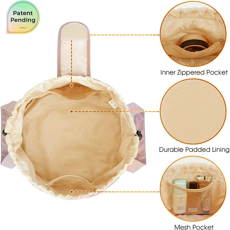 New Large Capacity Portable Drawstring Cosmetic Bag - Stylish Travel Toiletry Organizer with Makeup Brush Storage