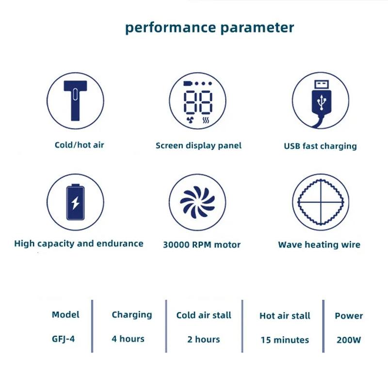• 1 x Rechargeable Hair Dryer 3 Speeds Adjustable White
