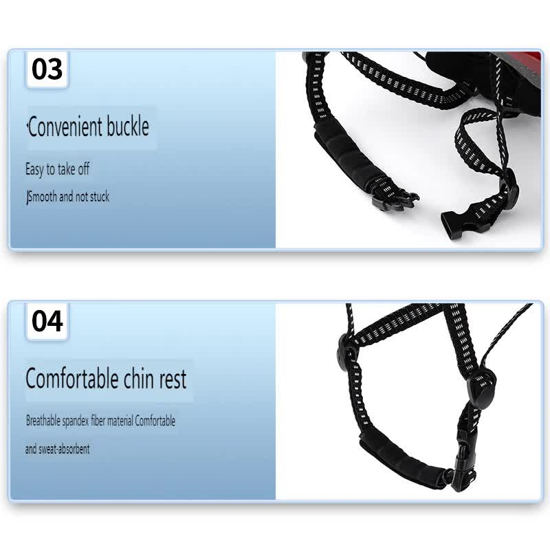 • Comfortable Padding & Chin Strap: Includes internal padding for added comfort and moisture-wicking. The adjustable chin strap features a soft pad and a convenient quick-release buckle for easy on/off.