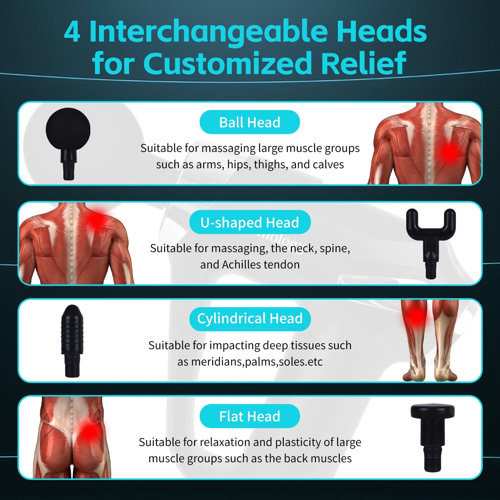 • 4 Massage Heads: U-shape / Spherical / Conical / Flat