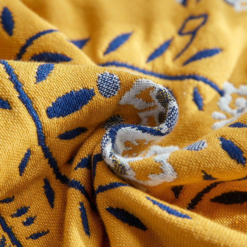 Single Blue Floral Pillow Towel Premium Cotton Gauze Pillow Towel Pair - Simple Nordic Style (52x75cm)