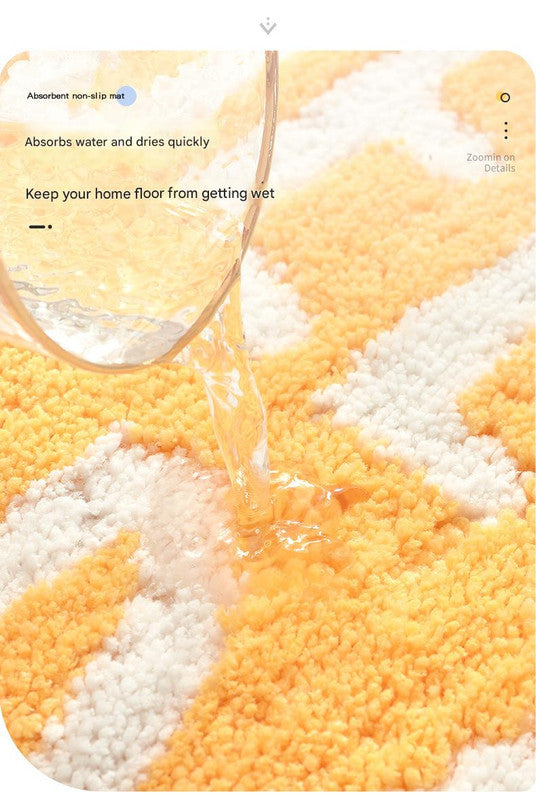 Step onto a cloud of comfort with our Super Absorbent Microfiber Bath Mat, designed to keep your feet dry and your bathroom floor safe. This delightful mat features a fun, fruit-inspired shape (e.g., lemon, peach) with playful text like "Squeeze The Day" or "Peachy Clean." Crafted from ultra-soft microfiber with a comfortable flocking texture, it offers high-capacity water absorption for effective wet/dry separation, ensuring your feet are instantly dry. The mat boasts a durable TPR (Thermoplastic Rubber) non-slip backing that firmly grips the floor, preventing slips and providing stability. Meticulously selected flocking material and locked-edge craftsmanship ensure quality and longevity. This versatile mat is perfect for use at the bathroom entrance, in front of the shower or bathtub, or even at other home doorways. Plus, it's machine washable for easy care.