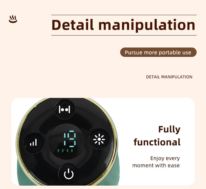 • Adjustable Intensity & Modes: Easily control the suction intensity ("Velocity adjustment") and activate red light heating via the intuitive button panel with a clear digital display. "Feel free to use it as you please."
